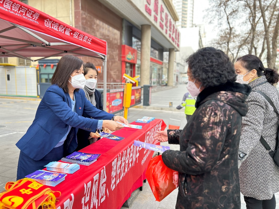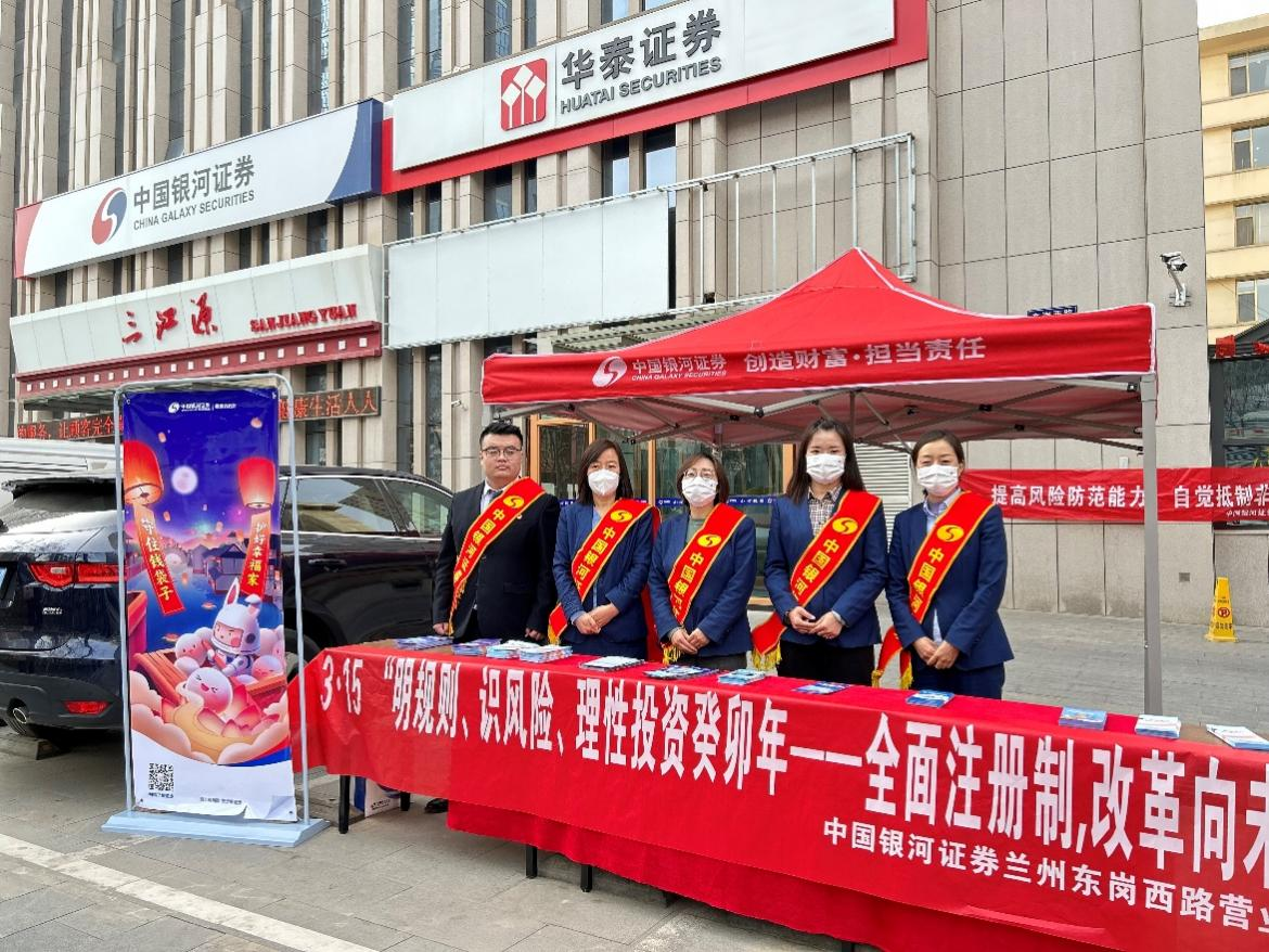 为进一步做好投资者合法权益保护工作,持续提高中小投资者的专业知识水平和风险防范意识,在"3.15国际消费者权益日"来临之际,中国银河证券兰州东岗西路营业部开展以“明规则、识风险、理性投资癸卯年——全面注册制,改革向未来”主题宣传活动。