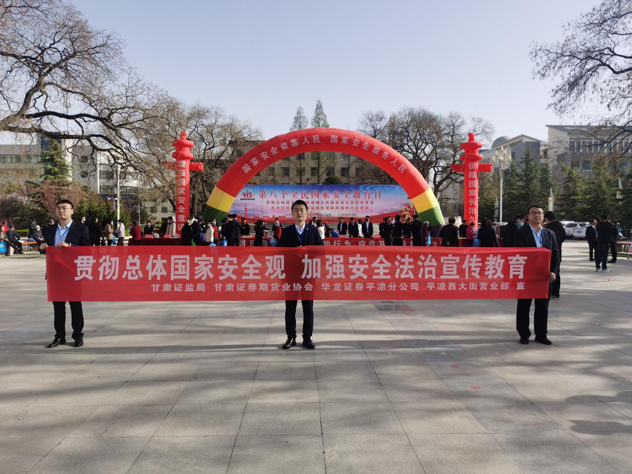 2023年4月15日是我国第八个全民国家安全教育日,为提高全民国家安全法治意识,筑牢国家安全人民防线,华龙证券平凉西大街营业部于4月12日-15日开展了以“贯彻总体国家安全观,增强全民国家安全意识和素养,夯实以新安全格局保障新发展格局的社会基础”为主题的国家安全教育日宣传活动,积极向社会公众普及国家安全知识,进一步提升全民国家安全特别是金融安全意识,保护人民群众财产安全和合法权益。
