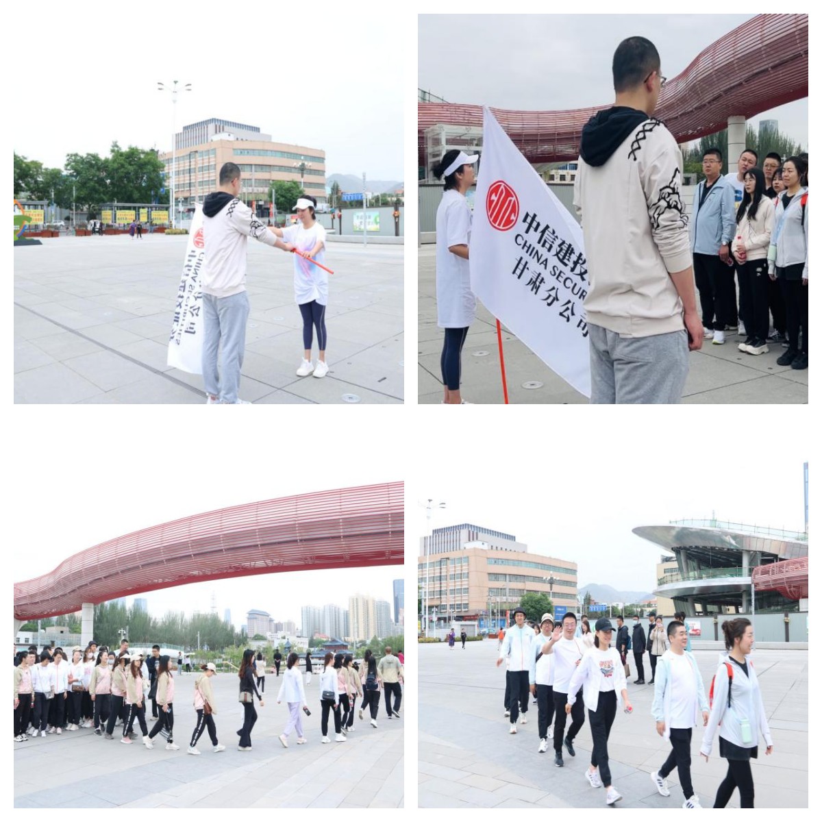 5月28日上午金城兰州风和日丽、碧空万里,上午9:20时,甘肃分公司辖内兰州、金昌、天水三家营业部全体员工六十余人齐聚兰州市雁滩公园,随着分公司总经理瞿建萍总的“授旗”发令,分公司健步行队伍步调一致、精神抖擞如长龙般浩浩荡荡向前出发。大家热情高涨地行走在风景旖旎的湖畔小路,欢声笑语连同愉悦的心情一同向北穿越体育公园,沿着母亲河黄河之滨一路向中山桥方向前进。
