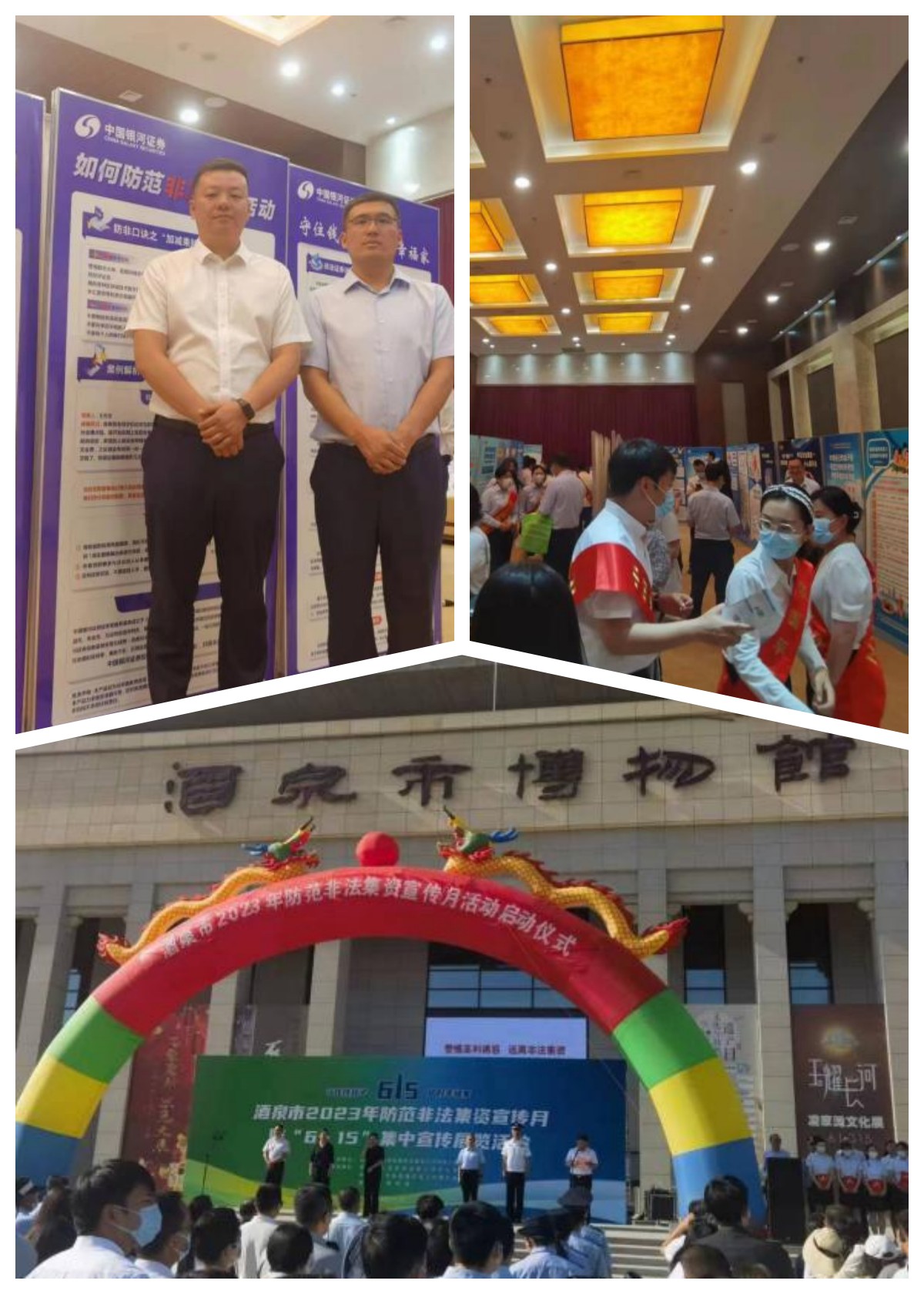 为防范和打击非法集资活动,保护投资者权益,增强投资者的风险防范意识,6月15日,酒泉市防范和处置非法集资工作领导小组办公室联合酒泉市肃州区辖区内银行业、保险业、证券业相关金融机构,开展主题为“守住钱袋子·护好幸福家”2023年防范非法集资宣传月活动启动仪式暨“6·15”集中宣传展览活动。