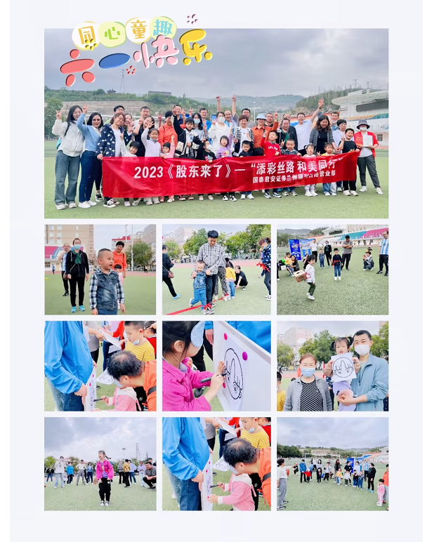 为庆祝六一国际儿童节,进一步加强对投资者的人文关怀,提升客户服务体验,国泰君安证券兰州福利西路营业部特别举办了一场“同心童趣”六一儿童节趣味运动会。大朋友小朋友全情投入,积极参与到各项运动比赛中,在体验运动的快乐、竞争的乐趣的同时,提升了儿童的规则意识及协作精神。此次活动,还特别与《股东来了》(2023)投资者权益知识竞赛活动结合在一起,邀请投资者积极参与。通过对幼儿财商教育、《股东来了》(2023)竞赛活动的推广,帮助家长关注孩子的体能发展,培养孩子对体育活动的兴趣,为孩子健康成长建立良好的运动习惯。同时也帮助投资者们树立正确的投资理财意识,通过知识竞赛学习更多的投资理财及权益保护知识,通过科学理性的投资保护家庭财务健康,更好地陪伴孩子们成长。