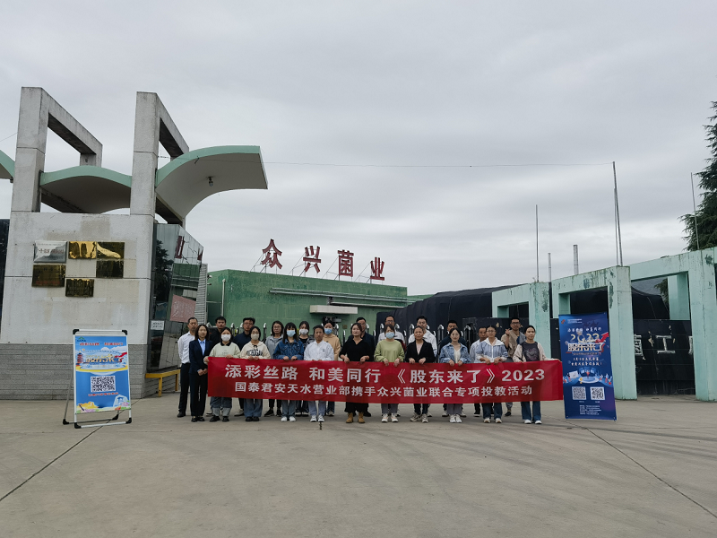 随着《股东来了》(2023)活动火热开展,吸引了众多投资者关注和参与,国泰君安证券天水建设路营业部联合天水众兴菌业科技股份有限公司,开展了“添彩丝路,和美同行”专项投教宣传活动,在天水农业高新技术示范园区和上市公司进行了深入的参观和探讨,为广大投资者提供了一次难得的学习和交流机会。