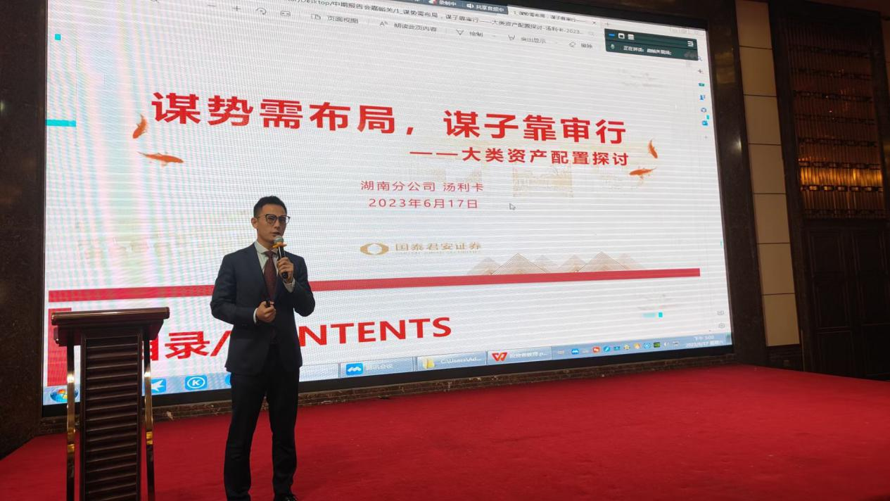 为进一步帮助投资者解读和判断2023年下半年投资机会,全面推进财富管理工作及客户服务工作的高质量发展,国泰君安证券嘉峪关新华中路营业部召开2023年中期投资策略报告会。