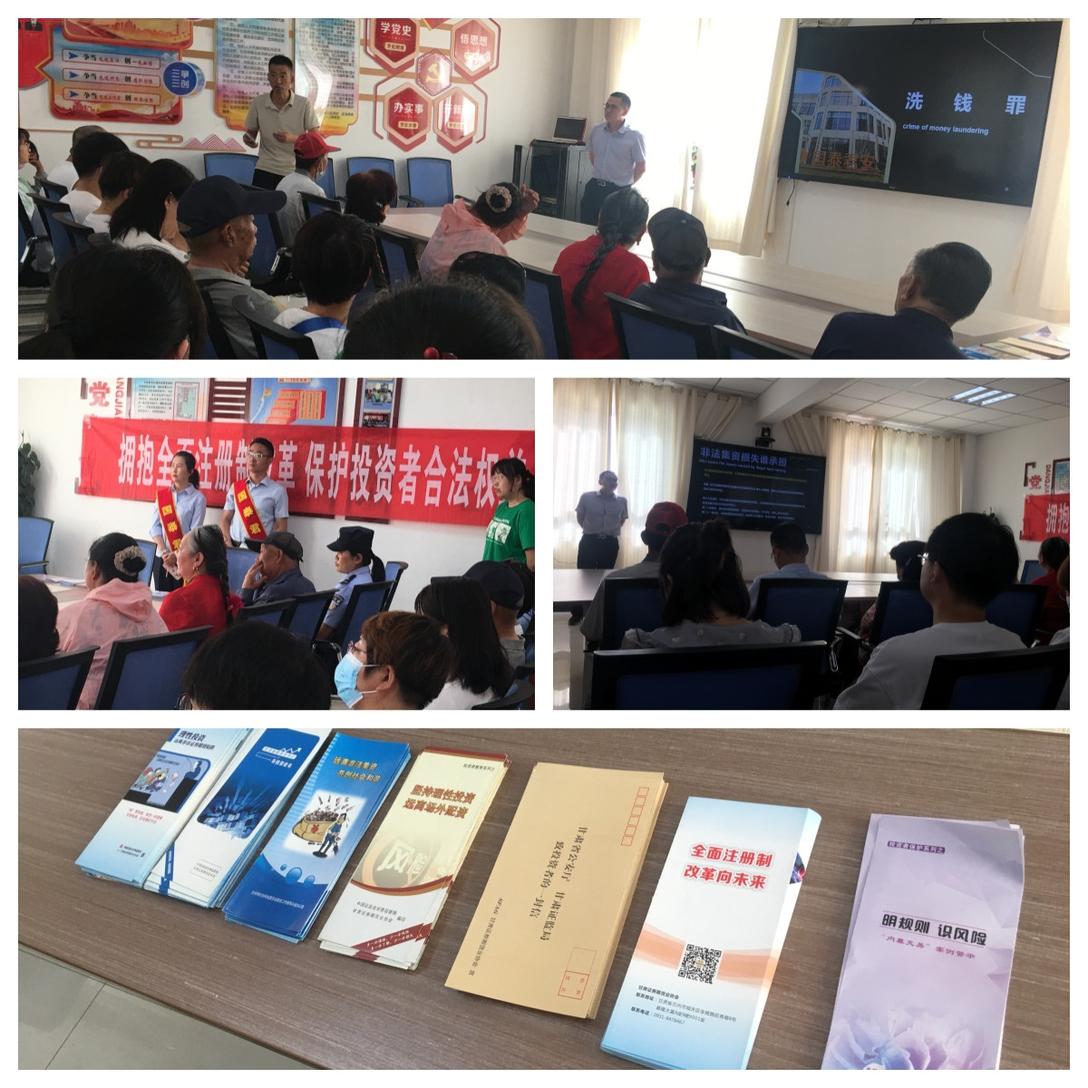 参加此次活动的还有肃州区公安局的干警,对我们防范非法集资所涉及的典型案例,以及严重后果等内容,给予了高度的评价。金融产品相关的非法集资案中,受骗的主要人群对金融相关的知识欠缺,听信朋友亲人传播的原始股的诱惑,为此,工作人员针对此相专题讲解了金融市场注册制等内容,让参与活动的人群学习到充分的金融知识和金融政策。