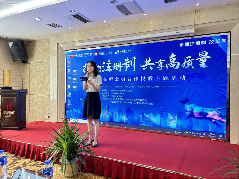 为深入落实全面实行股票发行注册制改革,筑牢资本市场高质量发展基础,引导投资者树立理性投资理念,2023年8月6日下午,在中国证监会投资者保护局的指导下,由上海证券交易所、中国银河证券主办,中国银河证券投教基地、兰州东岗西路证券营业部承办的“拥抱注册制 共享高质量”主题投教活动,在兰州顺利举行。共有近60名投资者参与。