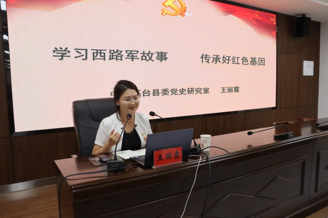 接下来高台县委党史研究室主任王丽霞主任为全体学员讲授专题党课《重温西路军历史 传承红色基因》课程,从西路军西征历史背景和肩负使命;西路军的征战历程和悲壮结局;西路军的历史贡献和评价;西路军英雄人物;西路军的革命精神五大方面,为大家深情讲述了西路军详尽的斗争史诗,在场学员无不潸然泪下。在授课过程中王主任情真意切,感人至深,她通过详细的史料和生动的故事,让学员们深刻领会到西路军战士们的英勇顽强和坚定信念。在场的学员们无不为之动容,纷纷表示要铭记历史,传承红色基因,为实现中华民族伟大复兴的中国梦而努力奋斗。