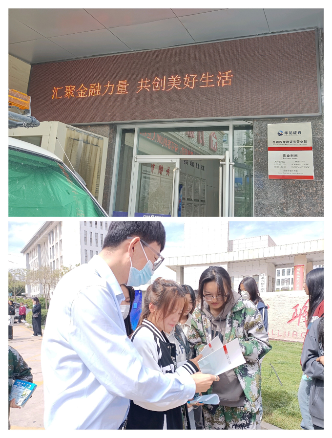 9月26日为“五进入”集中教育宣传日,营业部在上午10点组织员工进入白银矿冶职业技术学院向在校学生开展2023年“金融消费者权益保护教育宣传月▪进校园”主题教育宣传活动。向在校学生普及金融知识,加强对青少年个人信息保护,提醒学生预防电信诈骗、校园贷,促进青少年提高风险意识,树立理性消费观念。为了更好地达到合力发声宣传效果,下午2点在白银区五一街市场设立咨询台,悬挂横幅,向街道过往人群发放宣传手册,针对当前易受骗的老年人普及宣传非法金融诈骗等典型案例,提醒广大投资者远离非法证券活动,提高风险防范意识。