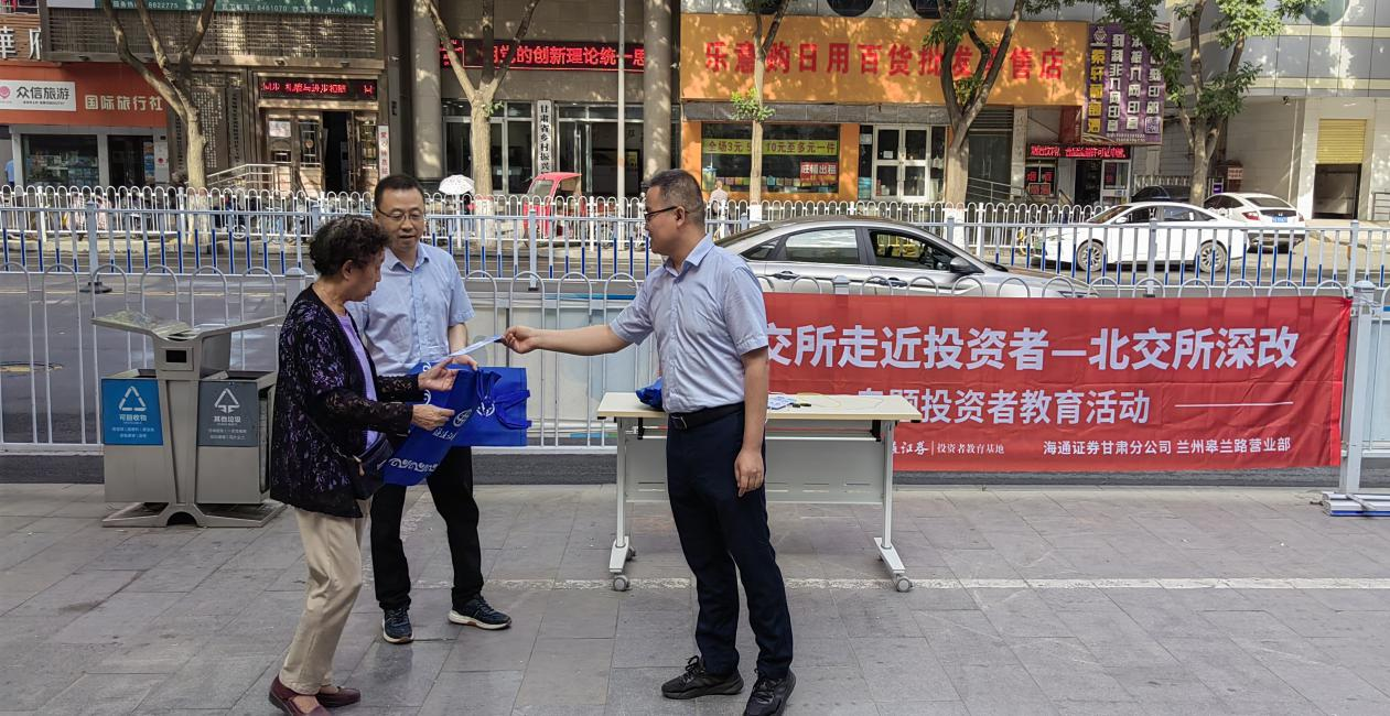 为进一步优化北交所市场投资者结构,推动投融两端平衡发展,提升投资者金融素养与知识水平,2023年9月18日海通证券兰州皋兰路营业部在街道开展“北交所走近投资者——北交所深改”专题投教活动。