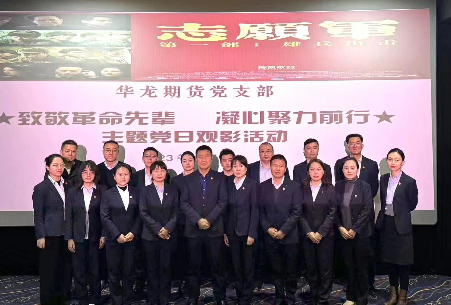 为学习和弘扬中国人民志愿军的伟大爱国主义精神,引导全体党员传承红色基因,增强爱国情怀,营造崇尚英雄、继承遗志、砥砺奋进的良好氛围。2023年11月9日晚,华龙期货股份有限公司党支部组织全体党员观看爱国影片《志愿军:雄兵出击》。
