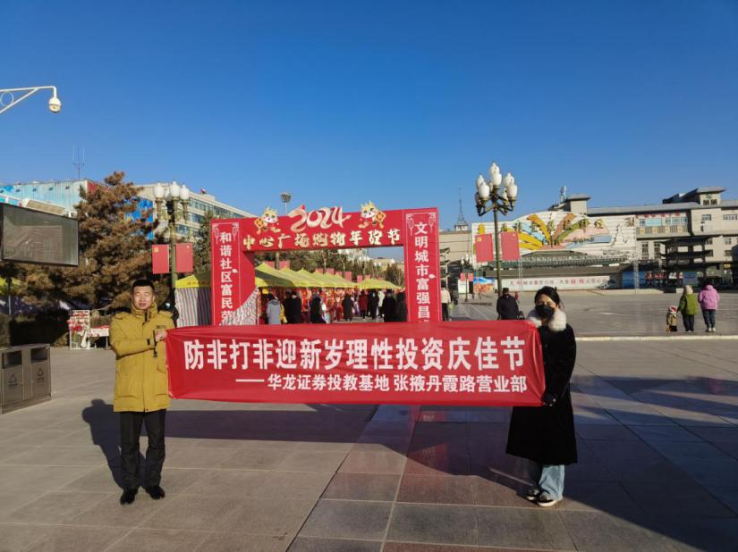 2024年1月22日,呼啸的北风夹杂着冬日的寒意使得气温骤降到零下20度,但华龙证券张掖丹霞路营业部投教人秉持工作责任与热情,带着一份温馨与关爱,来到了张掖市中心广场年货节市场,为购置年货的市民朋友带来了防非反诈知识。