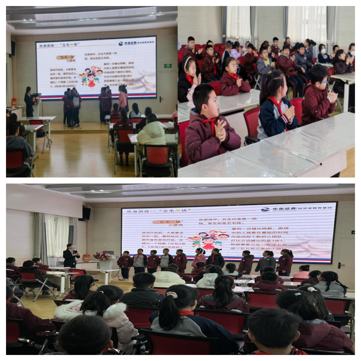 树立财商意识、形成财商思维、养成财商习惯,对于提升当代青少年综合素质具有重要意义。华龙证券投资者教育基地李老师为四年级的同学们带来了一堂生动有趣的“财富魔法课”,结合游戏互动、视频动画等形式深入浅出的向小朋友们普及金融知识。