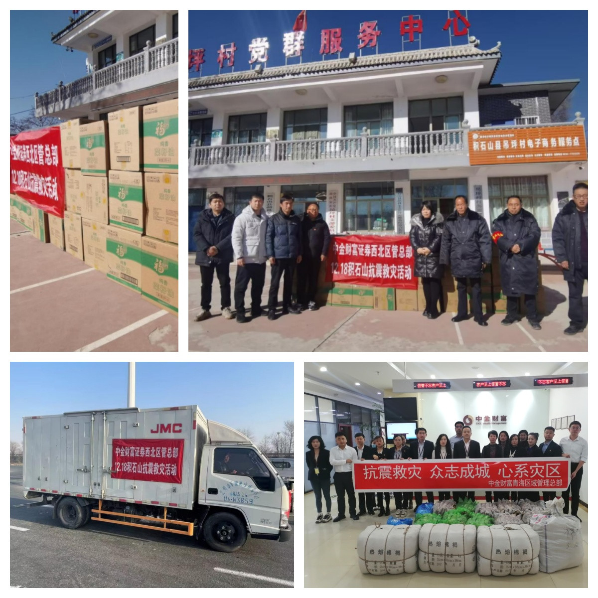 其中,西北管理总部党总支第一时间发起募捐,委托兰州南滨河路营业部党支部采购物资,安全送达积石山县吊坪村。青海管理总部党总支党员领导干部带头捐款,用善款购买50套防寒棉衣、被褥、手套等灾区急需物资,由青海证券业协会统一装车从西宁送往灾区,为受灾地区提供关怀和援助,帮助灾区同胞尽快渡过难关。