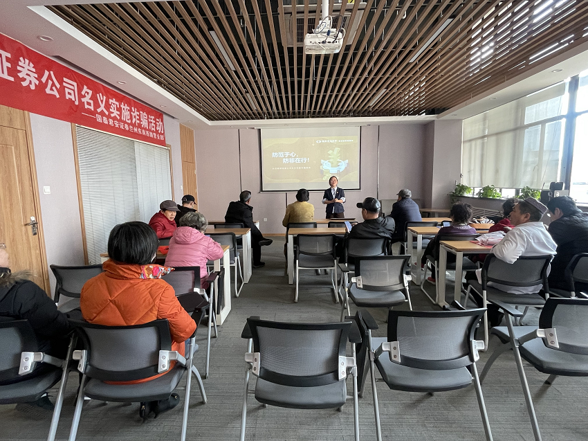同时营业部积极邀约中老年投资者参加线下投教宣传课堂,向投资者宣传普及非法集资常见表现形式及诈骗手法。活动现场,大家热情参与、主动学习,就各自存在的疑问与工作人员积极交流。工作人员再次叮嘱大家不要贪图小便宜、不透露个人信息、不轻易转账汇款,拒绝高利诱惑,树立理性投资理念,提高自我保护意识。