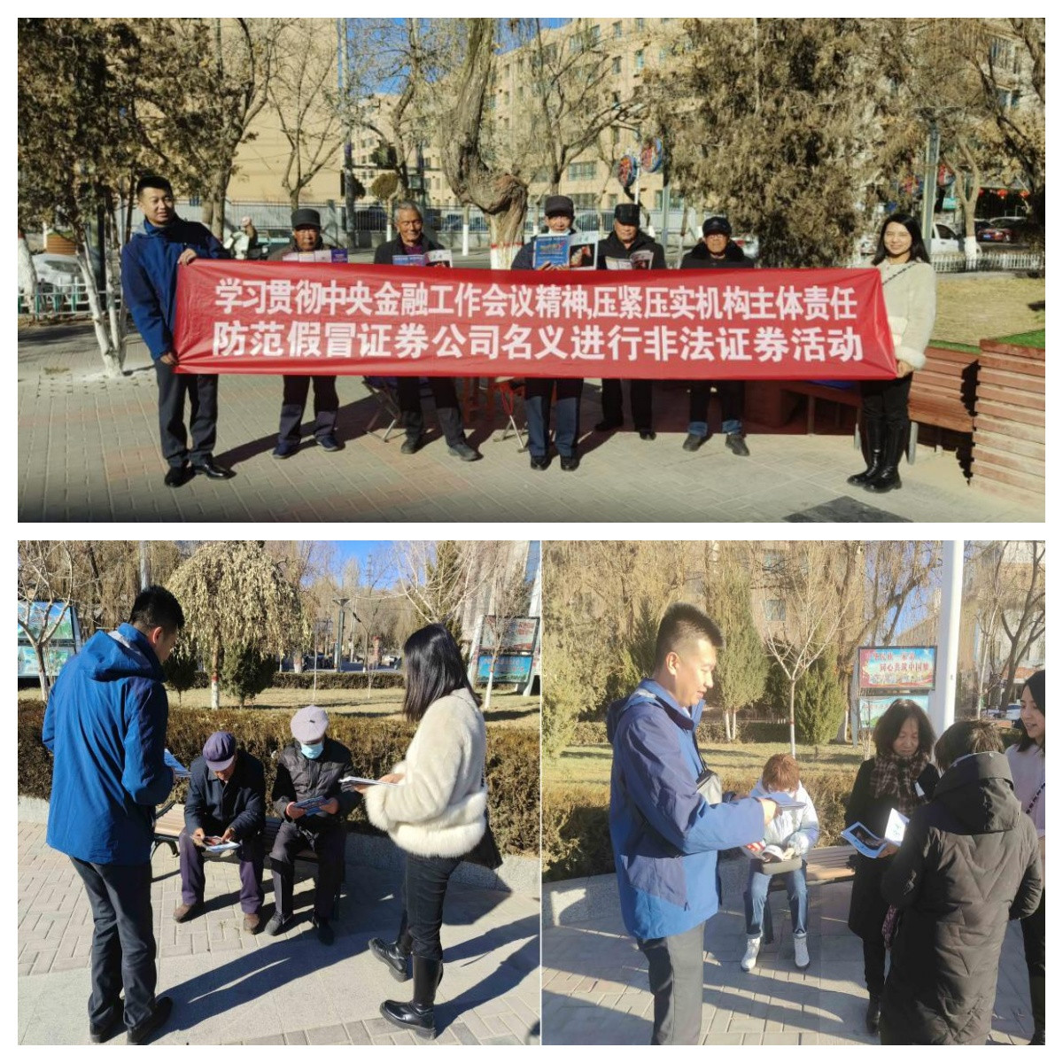 2024年2月1日,为了更好的配合岁末年初防范非法金融活动专项投资者教育宣传,华龙证券张掖丹霞路营业部开展了“防范假冒证券公司名义进行非法证券活动”主题宣传。