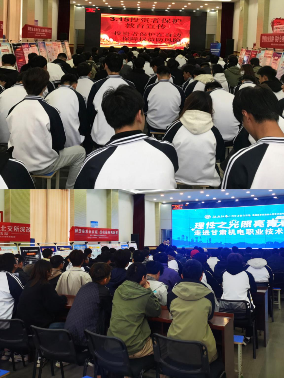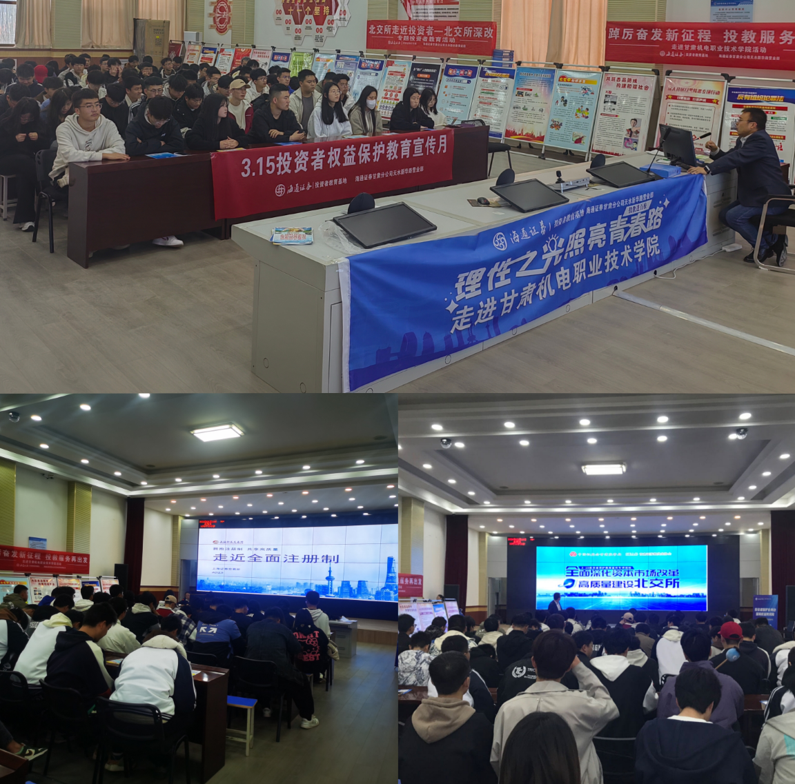 为践行以投资者为本的理念,切实做好投资者宣传教育工作,海通证券天水新华路营业部以“3.15投资者权益保护教育专题月”为契机,结合防非、全面注册制、北交所深改和etf知识等专项活动走进甘肃机电职业技术学院,开展“理性之光照亮青春路”海通证券投教进百校活动,面向150多名在校大学生宣讲金融知识。