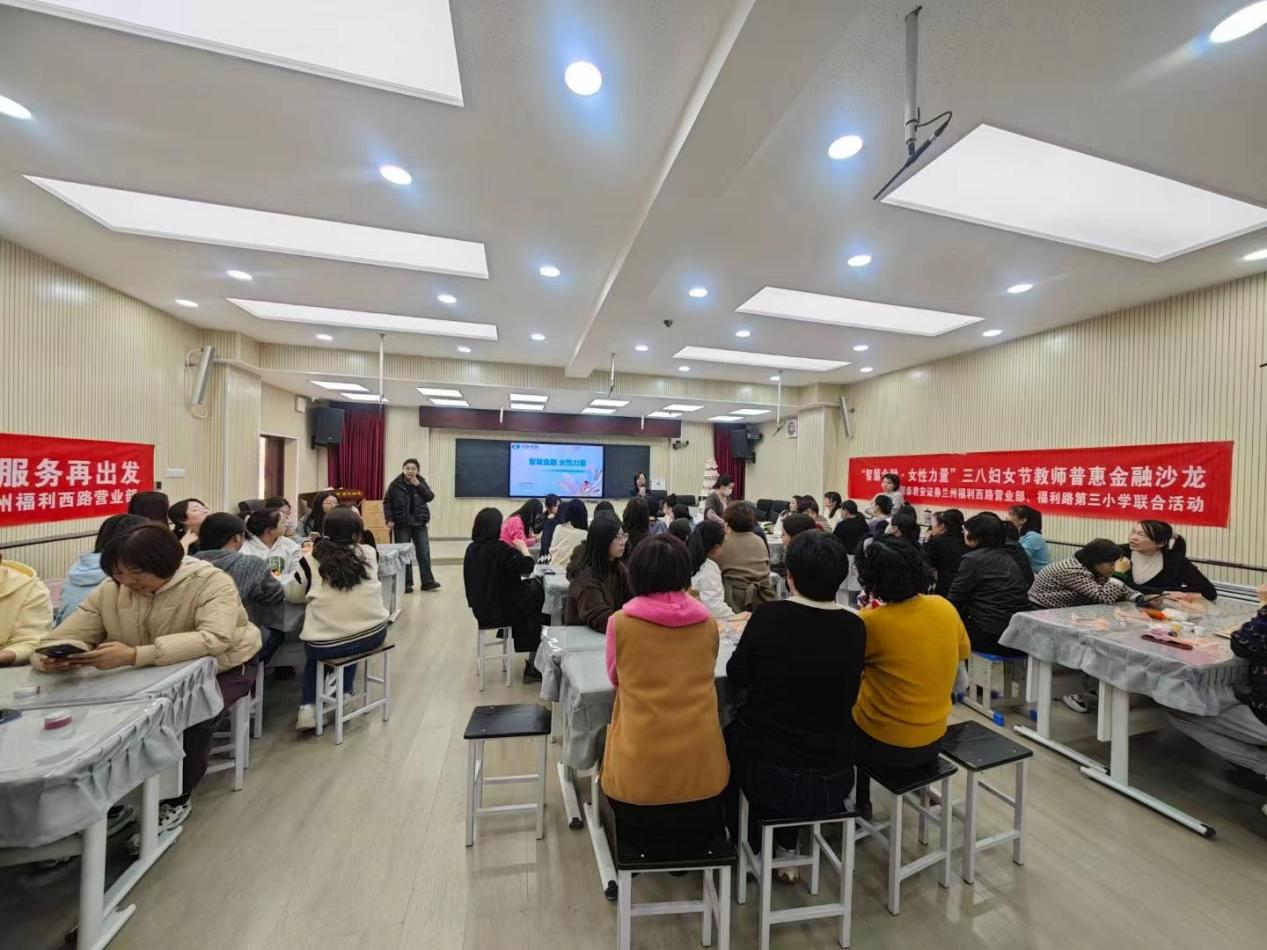 2024年3月8日下午,一场别开生面的投资者教育活动在福利路第三小学成功举办。本次活动以“智慧金融·女性力量”为主题,针对全校女教师展开了一场生动且有意义的普惠金融沙龙,旨在提升教师们的金融素养,并期望通过他们用这些重要的金融知识影响至学生及家庭层面。