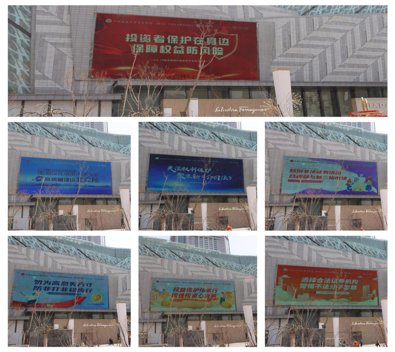 为扩大宣传覆盖面,进一步加强广大投资者对防范非法集资、新三板知识的理解,华龙证券投教基地联合甘肃证监局、甘肃证券期货业协会、国芳集团,在兰州核心商圈大屏幕展示3·15相关主题系列海报、向公众推广介绍打非防非、北交所、新《公司法》等知识,让理性投资走进千家万户。
