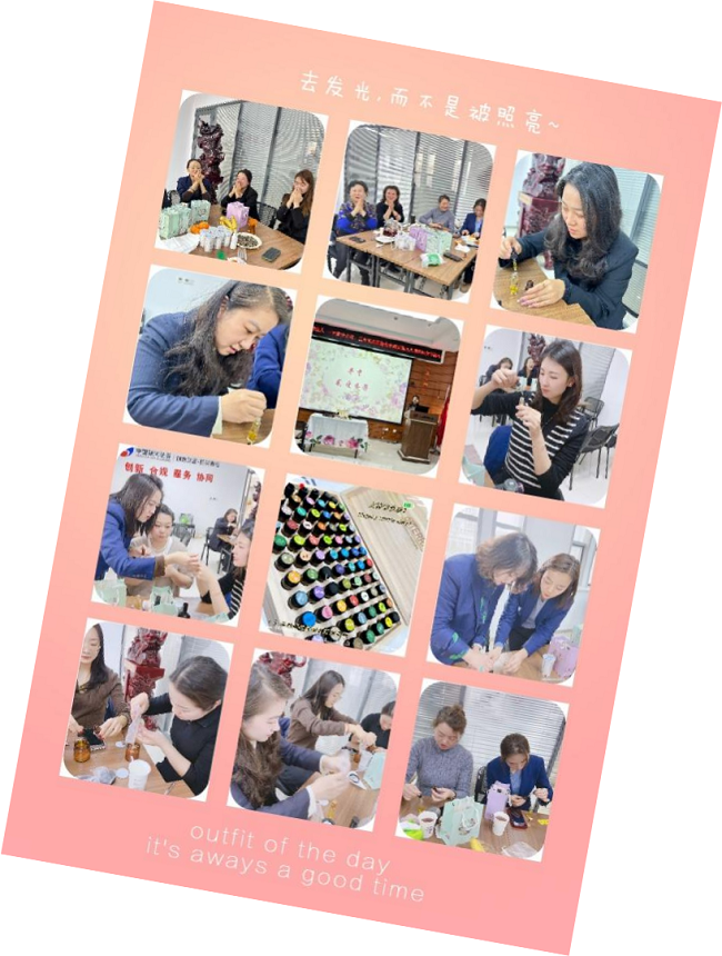本次活动在创造美、欣赏美、感受美的过程中圆满完成,也激发了大家对生活的热情,对美的追求与热爱,通过品鉴精油、手工diy 点燃长存心中的无限美好,享受这一刻舒缓的时光,升华对生活的美好感悟,全体女职工一起度过了一个温馨而有意义的节日。