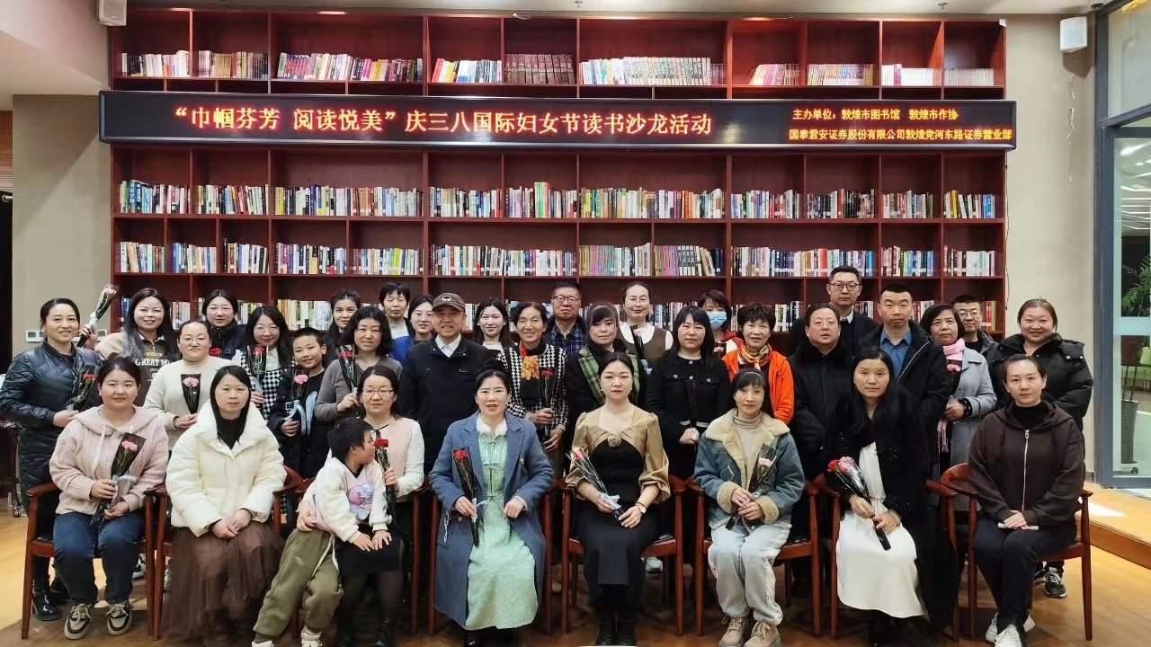 3月6日,国泰君安证券敦煌党河东路营业部联合市图书馆、市作协共同举办了“巾帼芬芳 阅读悦美”庆三八国际妇女节读书沙龙活动,此次活动共计40余人参加。