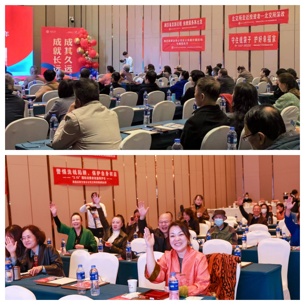 特邀海通财富管理总部顾问陈褚见老师及海通甘肃分公司艾龙老师给大家带来了策略报告及etf市场解读,内容详实紧贴市场脚步。活动还贯穿融入了投资者教育答题环节,通过互动问答的形式,让投资者更加深入地了解如何防范非法证券陷阱、北交所交易规则等投资知识,整个活动受到了投资者一致好评。