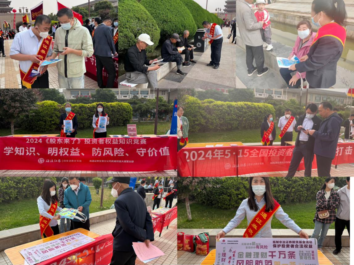 2024年5月15日海通证券武威祁连大道营业部结合甘肃证券期货业协会和海通证券总公司“关于组织开展2024年度5.15全国投资者保护宣传日”宣传活动的工作要求,参加了武威市公安局联合人民银行武威市分行在武威市南城门广场开展的集中宣传活动。