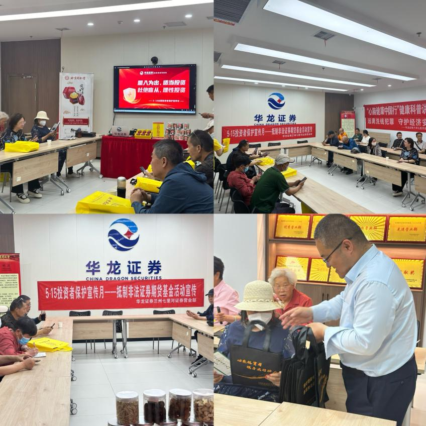 为深入贯彻中央金融会议精神,落实资本市场新“国九条”及中央金融办关于防范打击非法金融活动,突出以人民为中心的价值取向,加大防范非法证券期货基金活动正面宣传力度,更加有效保护广大投资者的合法权益,同时加强抵制非法证券期货基金活动的宣传,华龙证券兰州七里河证券营业部积极响应甘肃省证券期货业协会和华龙证券投教基地的号召,在5.15投资者宣传保护日来临之际,举办了以“5.15投资者保护宣传日——抵制非法证券期货基金活动”为主题的一系列宣传活动。本次活动通过防非知识讲座、户外广场宣传、跑马屏展示以及投资者教育园地海报宣传等线上线下结合多种方式,向广大投资者普及投资知识,宣传非法证券期货基金活动的危害,并引导投资者树立正确的投资观念。
