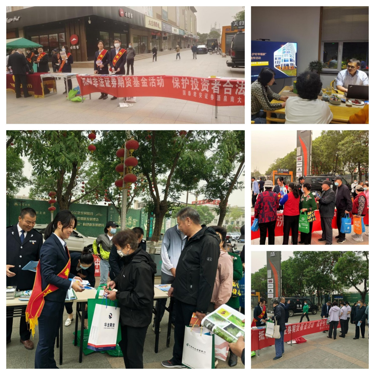 为贯彻落实新“国九条”及监管部门要求,加大防范非法证券期货基金活动正面宣传力度,有效保护投资者合法权益,国泰君安证券酒泉南大街营业部于2024年5月15日开展了“5.15全国投资者保护宣传日”活动,活动主题为“抵制非法证券期货基金活动,保护投资者合法权益。”旨在通过一系列宣传和教育活动,向投资者普及金融知识,传递理性投资理念,引导投资者树立风险意识,共同维护资本市场的稳定健康发展。