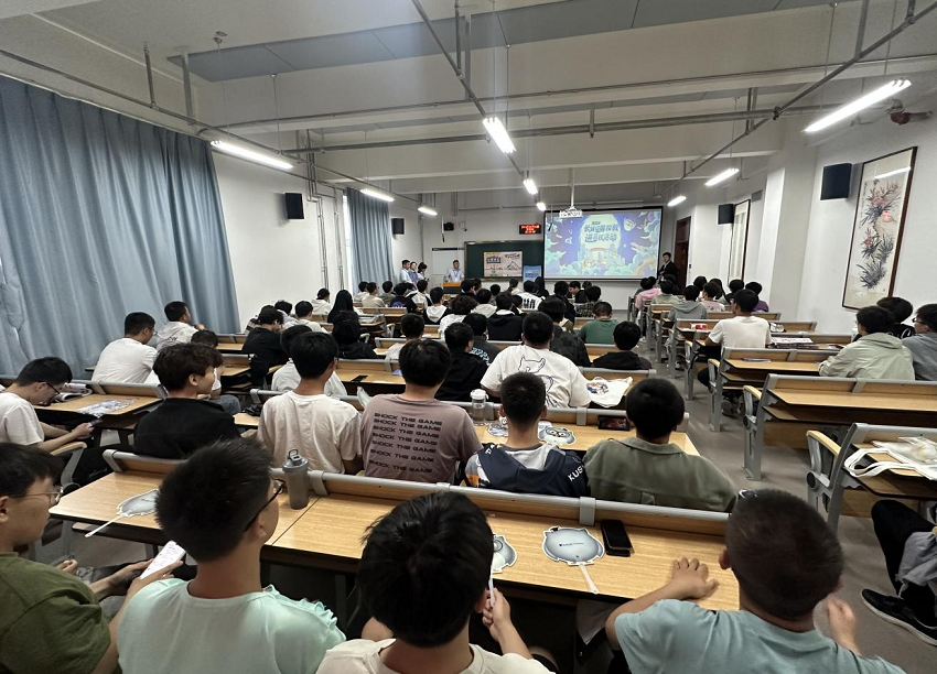 我们在活动现场张贴了本次宣传的多主题海报及横幅,为同学们准备了投教小礼品。营业部各投教小组成员就《股东来了》赛制介绍、金融基础知识、etf小课堂、反洗钱及防非案例展开了本次活动讲座。现场为同学们播放《股东来了》宣传视频,并发动大家将注册或答题的截图分享到群里,活动后凭权益积分值领取礼物。随后,由交易部经理徐源详细介绍了金融基础知识,普及投资理财的各类渠道;投资顾问候军军向同学们科普了etf的基本概念、发展历程及etf种类、定投等;合规经理徐梦璐就反洗钱、防范非法集资、防范假冒证券期货基金机构及投资者保护相关知识进行了讲解。