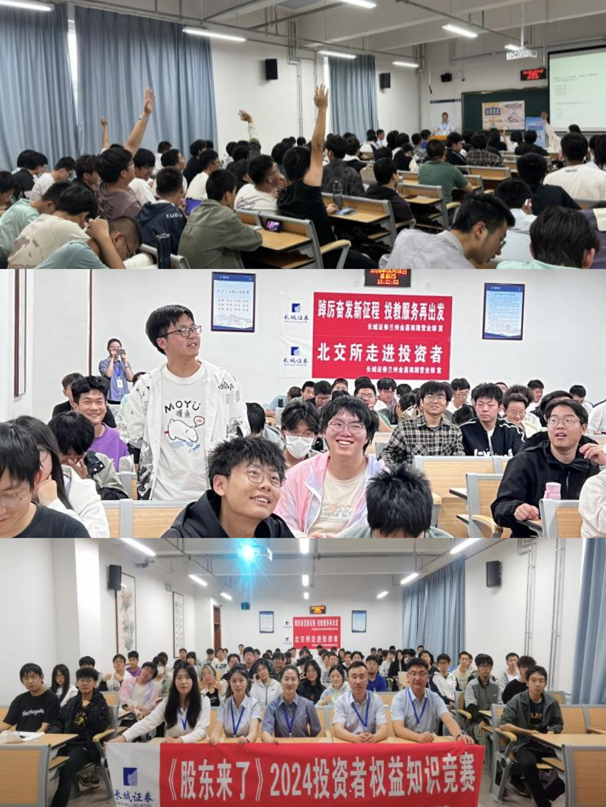 为贯彻落实新“国九条”及中央金融办关于防范打击非法金融的工作要求,在甘肃证券期货业协会的号召下,6月6日长城证券兰州金昌南路营业部联合兰州大学开展了以《股东来了》、“守住钱袋子,护好幸福家”为主题的投教进百校活动,本次活动邀请了120名土木工程专业大一新生。