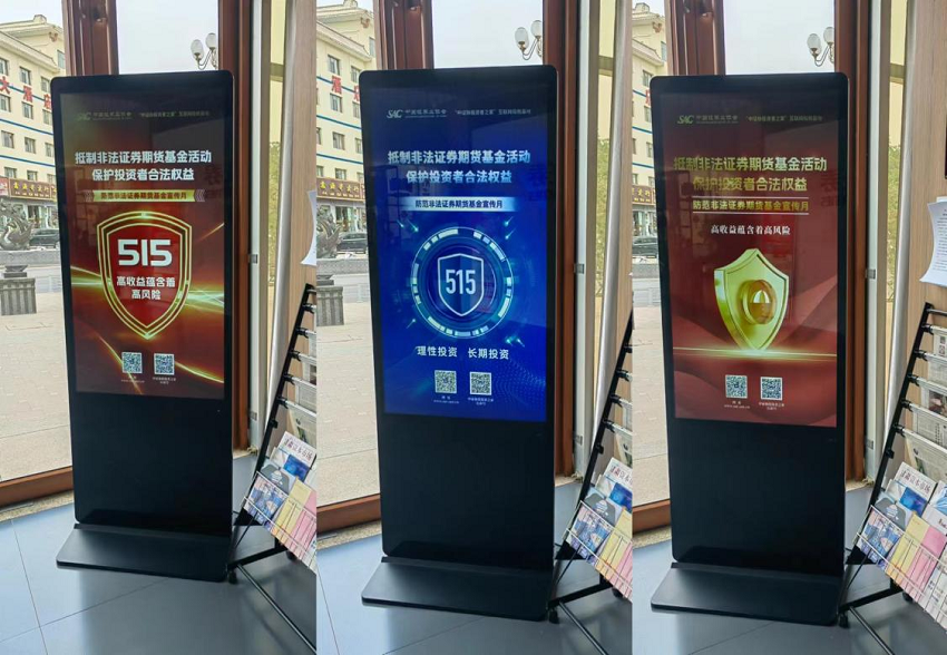 3.营业部现场设立“投资咨询”台,摆放各类宣传折页,电子屏展示宣传海报,在客户交易区发布“坚持理性投资、远离场外配资“的警示语录、播放相关视频案例,向广大投资者宣传场外配资的相关知识、业务模式及常用套路,提醒广大投资者提高风险防范意识,远离场外配资,以免遭受不必要的财产损失。