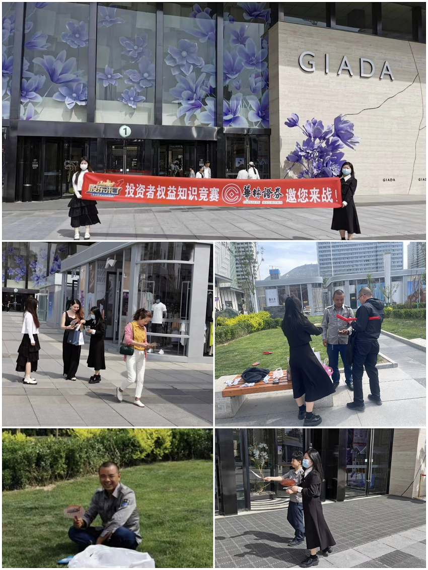 甘肃分公司制作《“股东来了”投资者权益知识竞赛 华林证券邀您来战!》的活动横幅,于2024年5月15日、6月14日在东方红广场国芳百货商圈、地铁口组织员工进行户外宣传。甘肃分公司结合“2024年防范非法证券期货活动”“2024年防范非法集资宣传月活动”,在现场发放“股东来了”宣传扇、《非法集资案例》、《致投资者的一封信》、《理性投资 远离非法证券期货陷阱》、《保护投资者合法权益》、“防范非法集资”、“反洗钱” “心系投资者 携手共行动”宣传折页、册籍等宣传品,开展多样化现场宣传。甘肃分公司在增强投资者金融投资知识、树立理性投资理念的同时,积极邀请投资者参与“股东来了”投资者知识竞赛活动,在整个宣传过程中,投资者能主动了解金融知识,热情高涨,并针对非法证券期货案例进行交流沟通,取得了良好的效果与反馈。