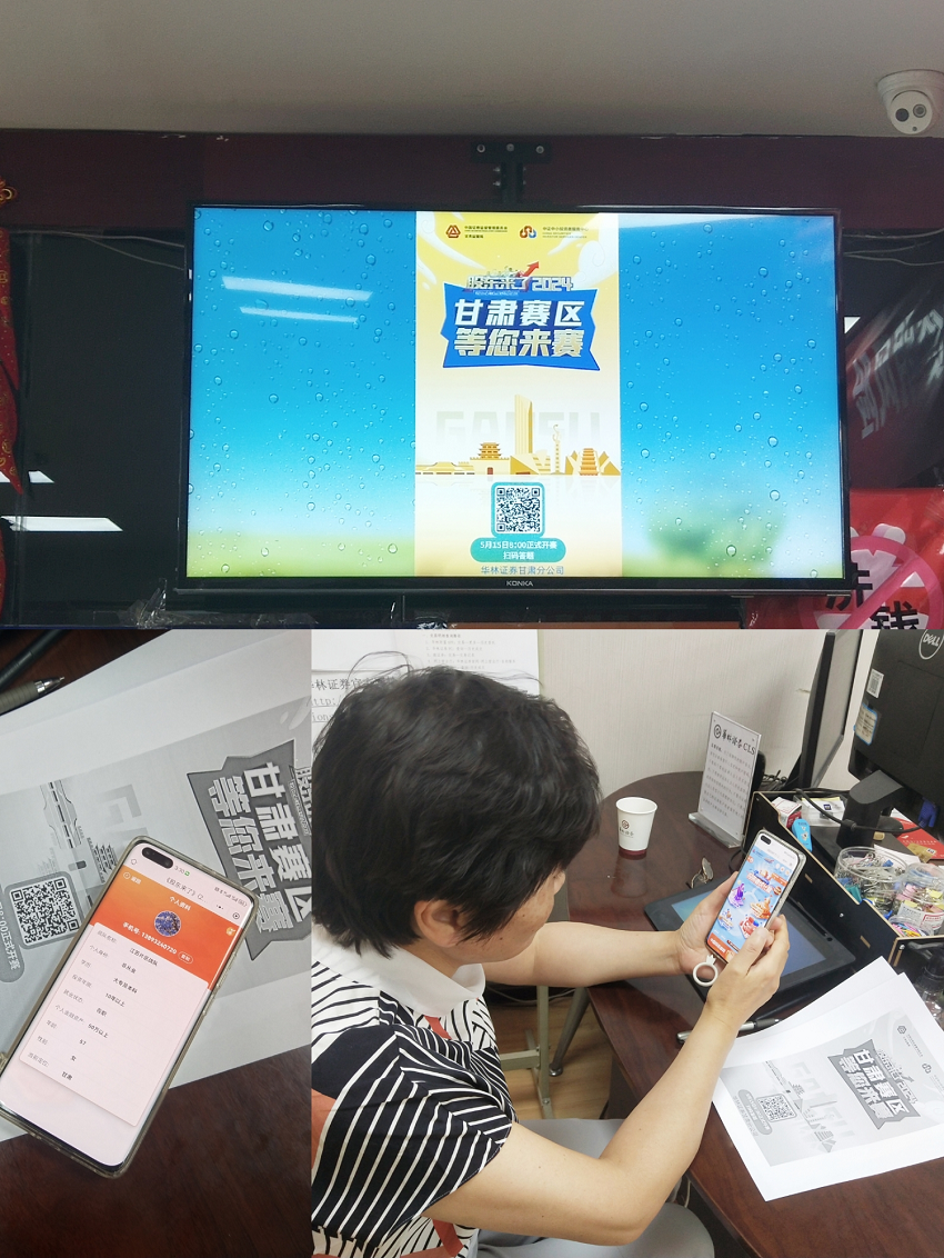 在投资者教育园地张贴《股东来了》投资者知识竞赛邀请、注册流程图及活动细则,在经营场所内张贴海报、电视大屏循环播放等,供客户现场阅读;甘肃分公司积极邀请现场办理业务的客户注册《股东来了》并进行答题,动员全体员工积极邀请投资者参与线上答题竞赛,注册并通过“投资者成长营”“读心魔法屋”“个人闯关赛”“猜词消消乐”“pk竞技场”,员工积极带动家人、朋友参与本次知识竞赛活动,将投资者教育工作从身边做起、落到实处。
