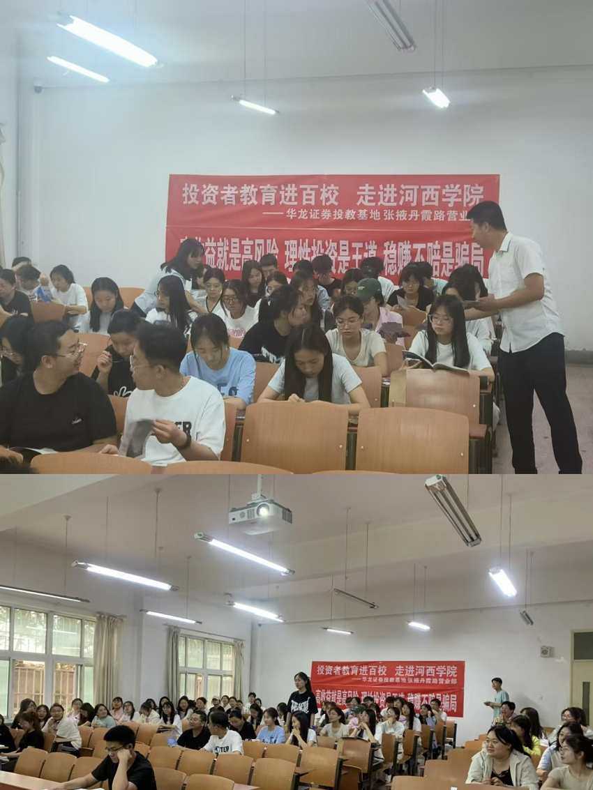 为了进一步提升在校学生,尤其是大学生群体的金融知识水平,培养理性成熟高质量投资者,推动投资者教育纳入国民教育体系,响应中国证券业协会“投资者教育进百校”的行动倡议。华龙证券张掖丹霞路营业部于2024年6月6日晚前往河西学院开展了“投资者知识进百校”暨《股东来了》(2024)宣讲活动。