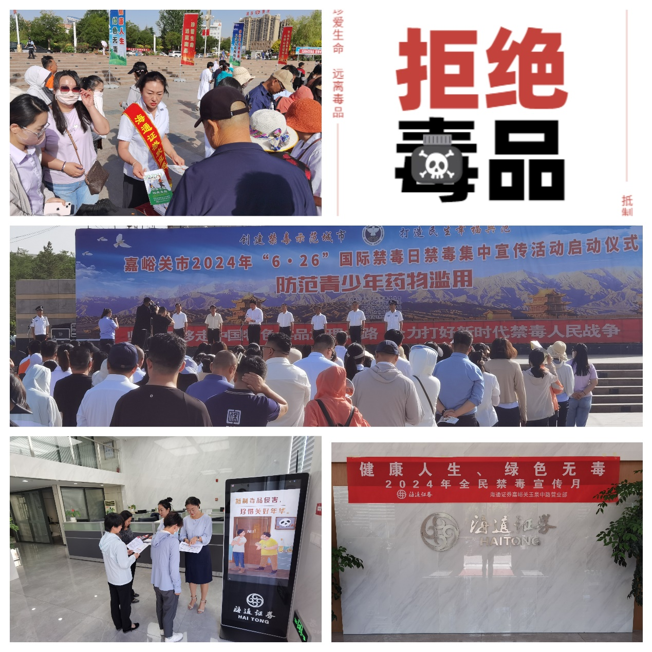为积极响应“2024年全民禁毒宣传月”的号召,海通证券嘉峪关营业部近日开展了禁毒宣传活动,旨在提高公众对毒品危害的认识,增强防范意识,共同维护社会的和谐稳定。
