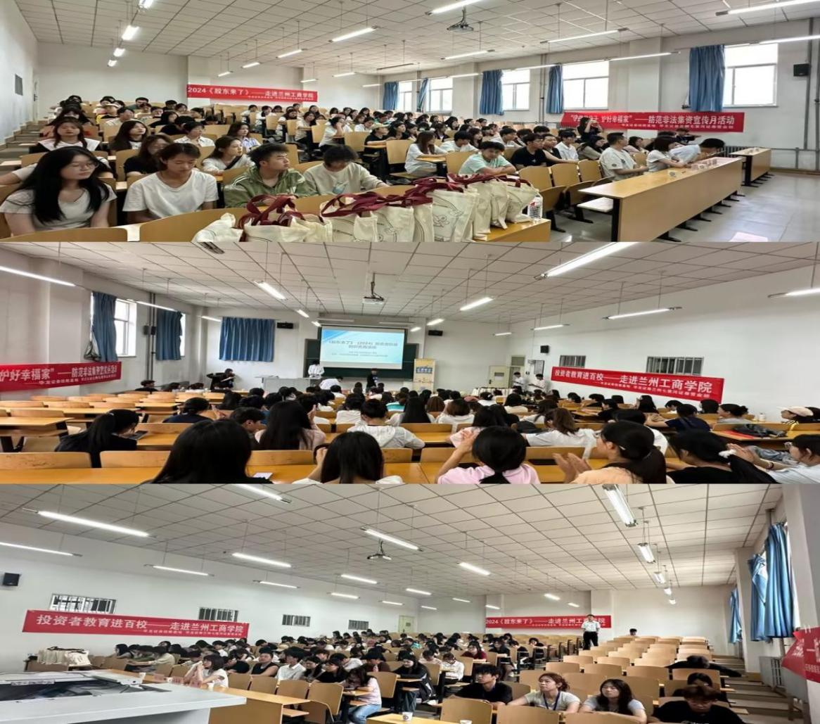 为积极响应中国证监会、中国证券业协会进一步推进投资者教育纳入国民教育体系的号召,有效提升高校学生的金融素养和风险防范意识,贯彻落实“投资者教育进百校”的工作要求,华龙证券投教基地联合华龙证券兰州七里河营业部走进兰州工商学院开展防范非法集资宣传讲座暨《股东来了》(2024)投资者权益知识竞赛答题宣传,活动参与人数共计100人左右。