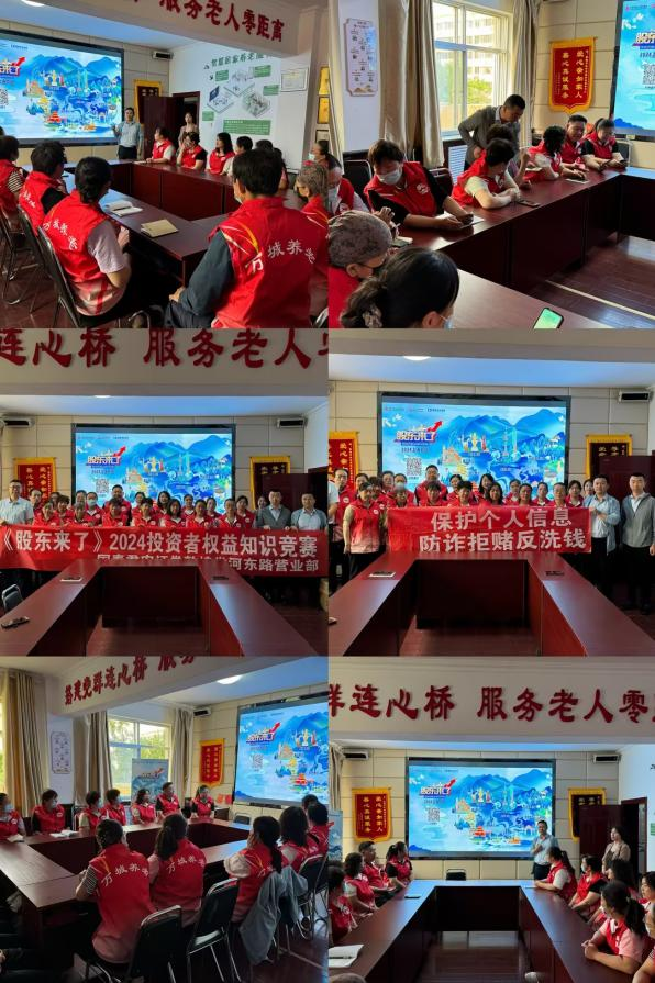 为了提高公众对非法集资、金融诈骗的警觉性,传播反洗钱的重要信息,敦煌党河东路营业部于2024年6月5日、6月6日分别走进敦煌市居民养老中心、敦煌市北台社区开展防范非法集资、警惕金融诈骗以及履行反洗钱义务宣传活动,同时向社区公众及工作人员开展《股东来了》(2024)推广宣传活动。