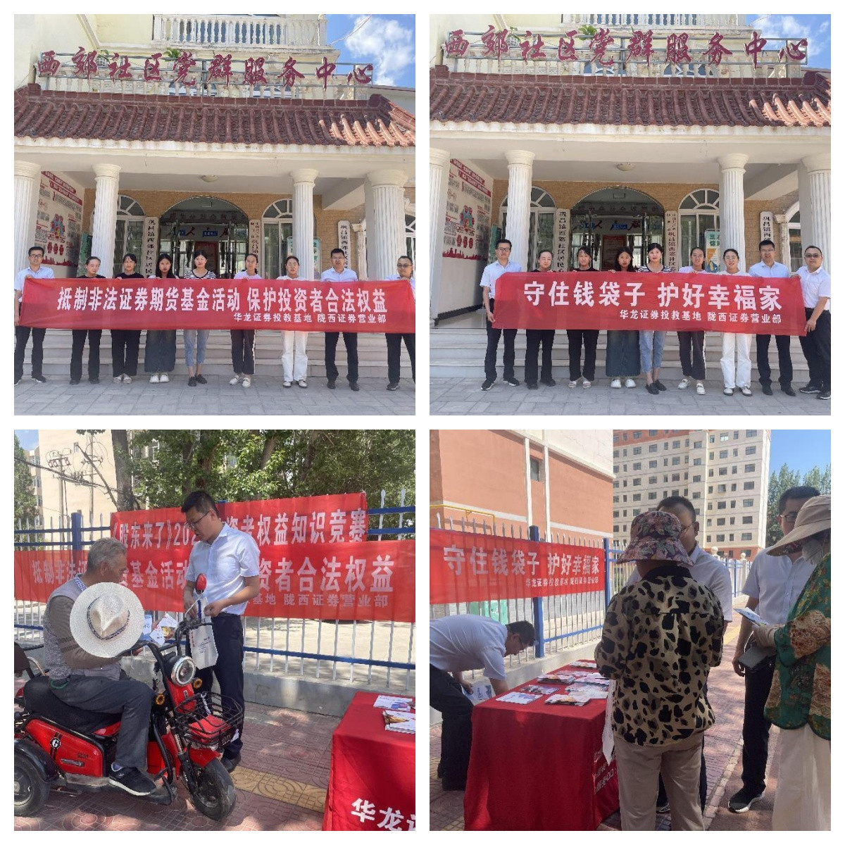 同时,营业部在防范非法集资宣传月期间多次组织人员到辖区各大社区、中国铝业西北铝加工分厂等地进行实地宣传,通过进社区、进企业的方式,与投资者近距离接触,在各投资及消费主体内普及金融知识,从群众需求出发,普及基础金融产品和服务相关内容,广泛宣传监管部门近年来出台的金融惠民利民政策及消费者权益保护监管制度,并对证券期货投资、非法集资、反洗钱等金融常识进行普及教育。