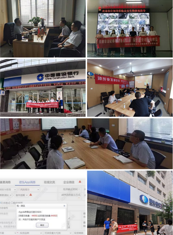 为进一步做好防范打击非法集资宣传教育工作,提高投资者对非法集资活动的认识,强化社会公众风险意识和防范能力,培养正确的投融资理念,自觉远离和抵制非法集资,同时根据相关要求,国泰君安证券天水建设路营业部高度重视,由营业部总经理、总经理助理牵头,营业部客服部组织,其他部门配合,严格按照工作安排及要求,认真组织实施,加大宣传防范、打击和处置非法集资有关法律、法规和政策,以典型案例揭示非法集资的风险及社会危害,引导投资者自觉抵制非法集资。有效的提高了宣传活动的有效性和针对性,并取得了良好的宣传效果。