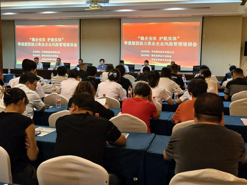 为全面贯彻落实党的二十大和二十届二中、三中全会精神,深入贯彻落实习近平总书记关于“三农”工作重要论述,巩固拓展脱贫攻坚成果,在推进乡村振兴上全面发力,近日,由华龙期货举办的“稳企安农 护航实体-苹果期货助力果业企业风险管理培训会”在天水秦安县召开,本次会议以郑商所苹果期货为主题,会议邀请了秦安县果业局、秦安县果品协会以及当地果业生产业链企业、投资机构50余人到场参加。