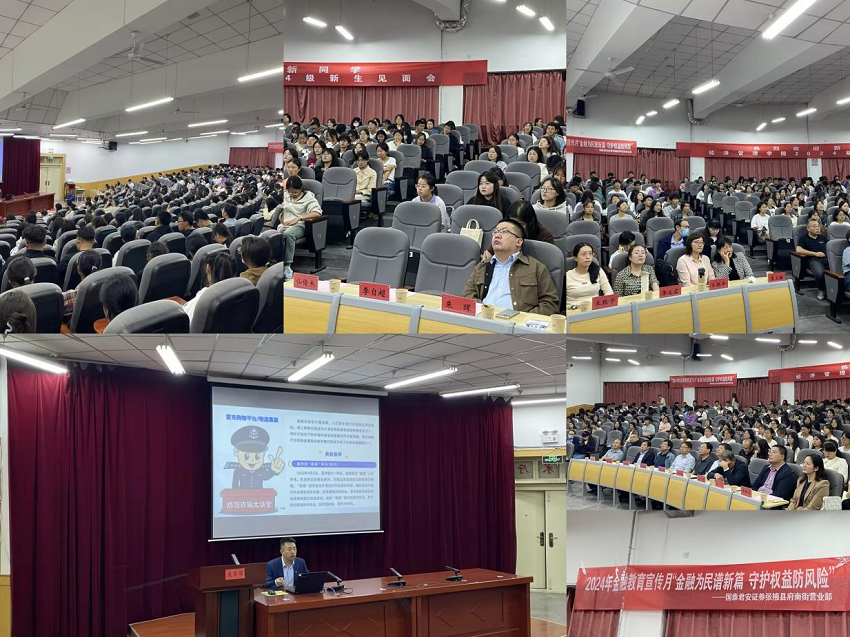 为进一步提升在校大学生的安全防范意识和自我保护能力,有效预防和减少非法活动及诈骗案件在校园内的发生。9月18日晚,国泰君安证券张掖县府南街营业部结合9月“金融教育宣传月”活动,在河西学院学术报告厅举行了一期“大学生防非防诈反洗钱宣传的讲座”,向大家普及防范非法活动和反诈骗及反洗钱知识,提高大学生的自我保护意识和能力。此次活动邀请了经济管理学院的领导及师生共计290多人。