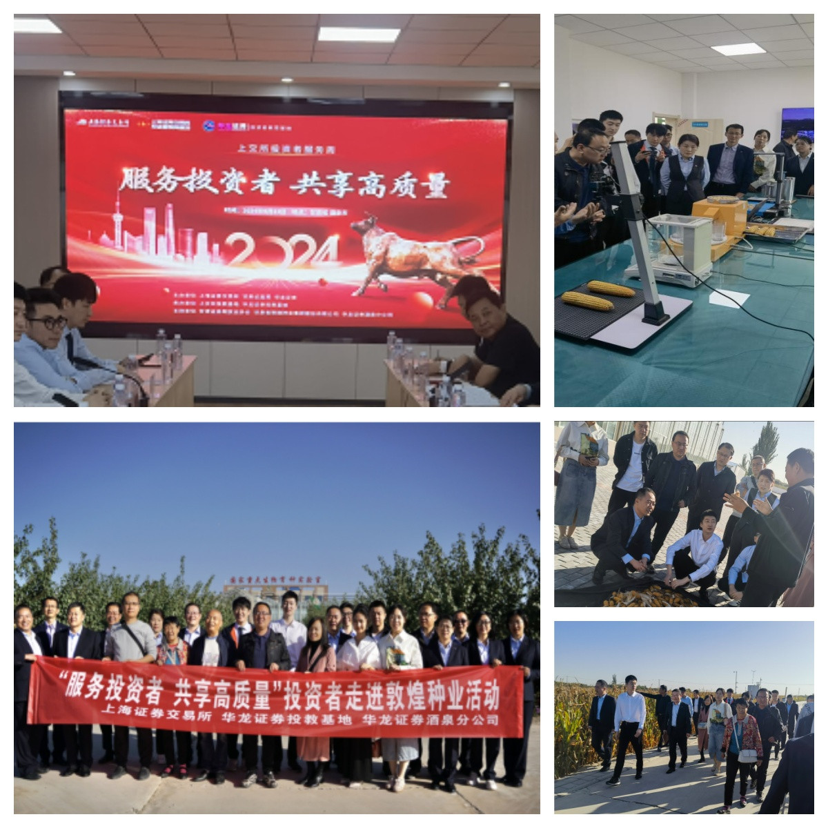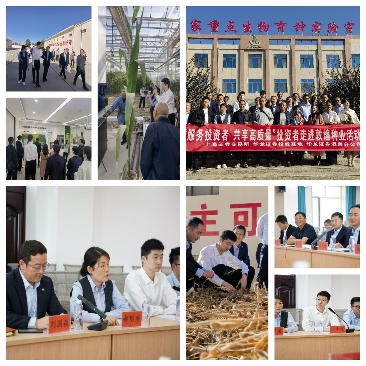 上海证券交易所投服部王小可、罗旭炎;敦煌种业党委委员、董事会秘书张玉财,财务总监武兴旺,董事会办公室主任、证券事务代表杨洁,研究院院长助理马世军等与当地投资者二十余人共同参加现场调研和座谈交流。华龙证券投教基地和酒泉分公司承办了此次活动。