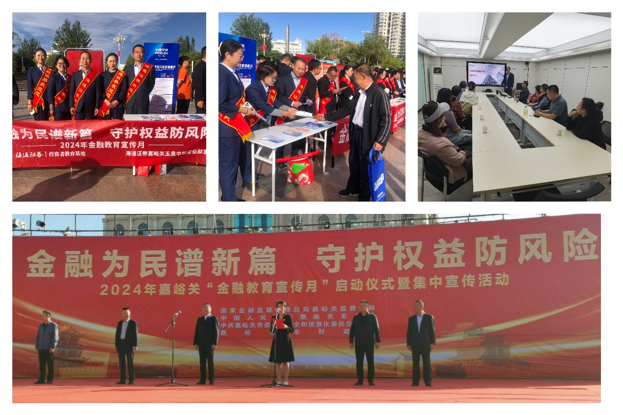 2024年9月,海通证券嘉峪关营业部积极响应公司及协会号召,开展了以“金融为民谱新篇,守护权益防风险”为主题的金融教育宣传月活动。此次活动旨在进一步提升社会公众的金融素养,强化投资者的风险防范意识,营造和谐健康的金融环境。
