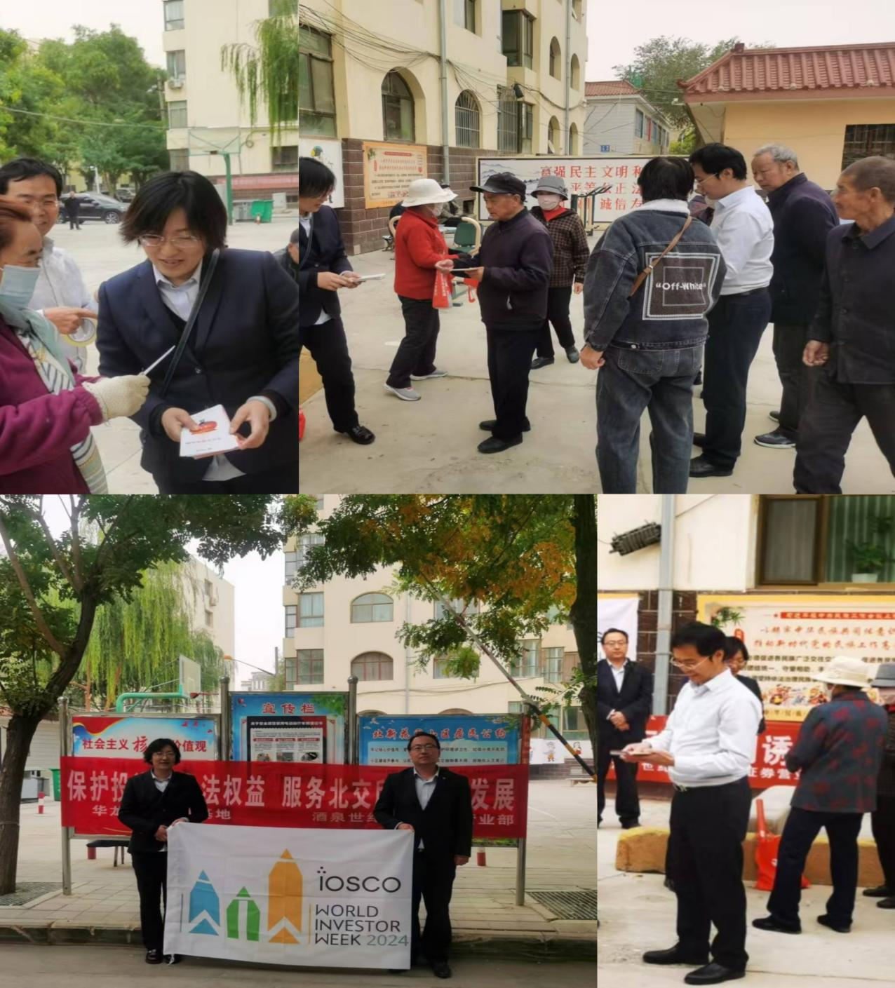 在2024年世界投资者周期间,华龙证券酒泉世纪广场东路营业部(以下简称营业部)在北新花园社区健身广场开展金融知识宣传活动,主要针对老年人进行防范非法金融活动、反洗钱以及证券投资者维权等内容的普及。