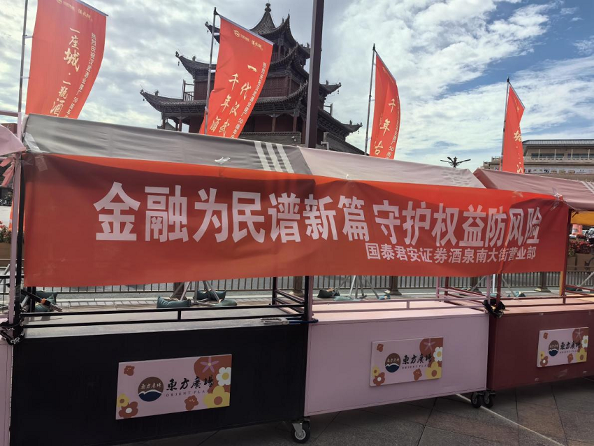 金秋九月,国家金融监督管理总局酒泉监管分局、中国人民银行酒泉市分行、中共酒泉市委网络安全和信息化委员会办公室、酒泉市财政局联合开展以“金融为民谱新篇 守护权益防风险”为主题的“金融教育宣传月”活动,国泰君安证券酒泉南大街营业部积极参与宣传活动。