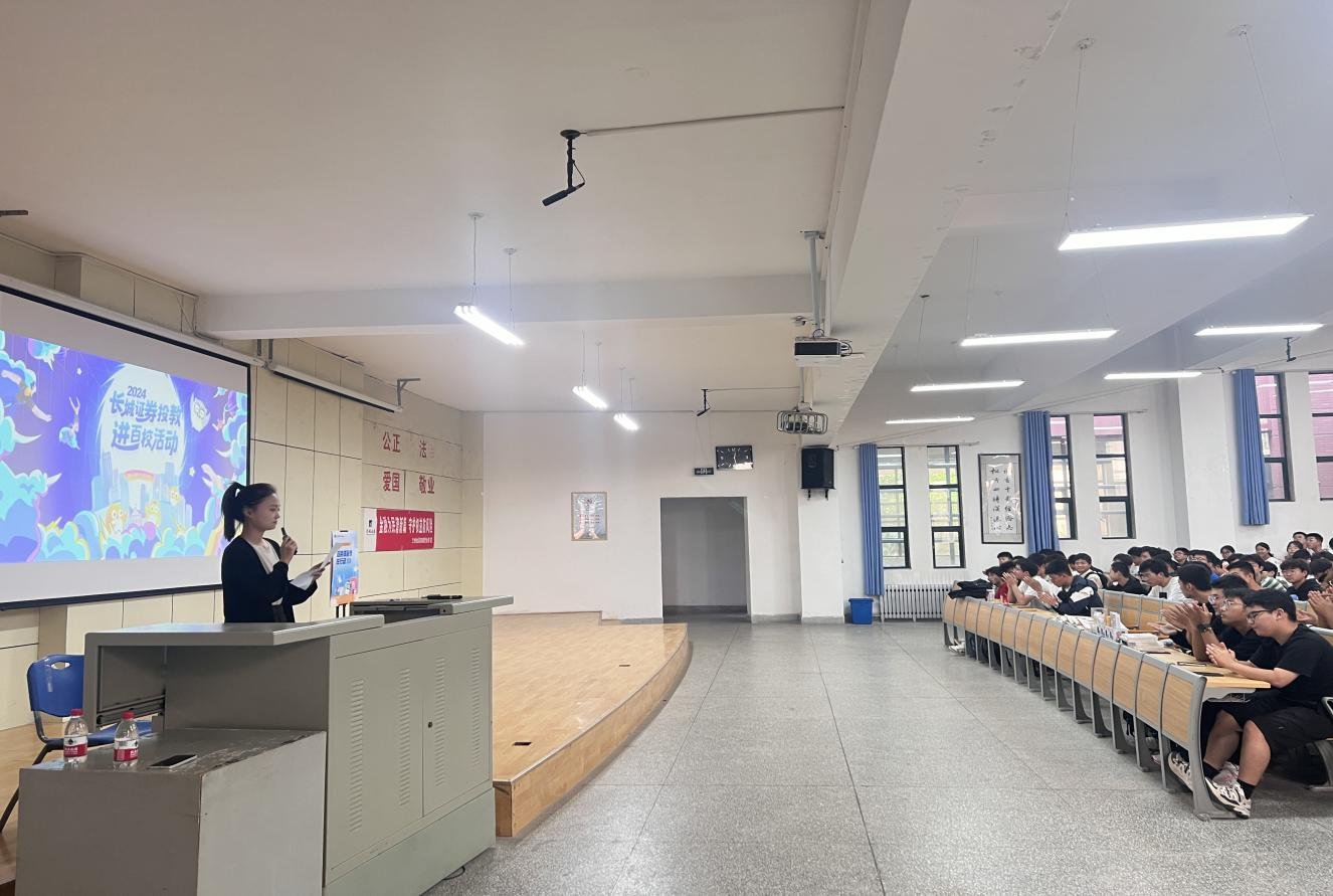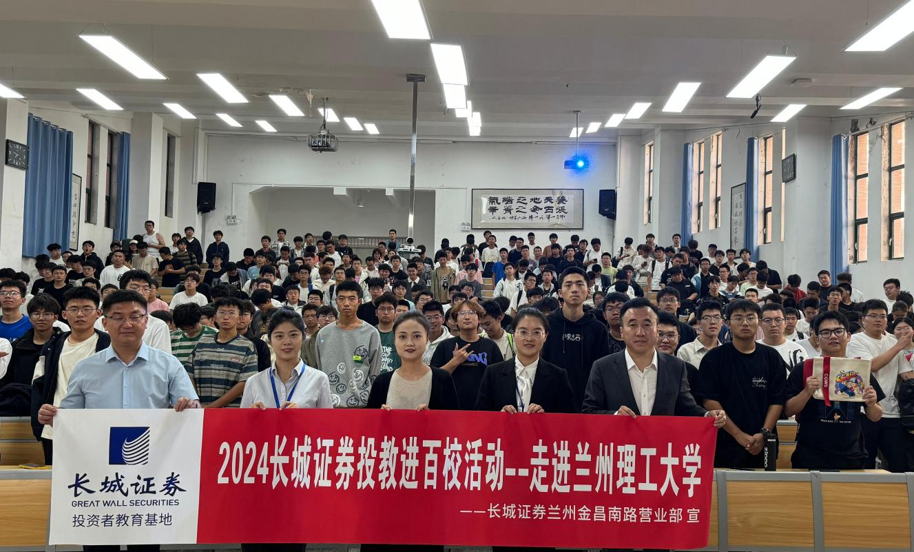 为贯彻落实党的二十大、二十届三中全会精神和中央金融工作会议部署,根据相关部门“金融教育宣传月”活动通知,2024年9月26日长城证券兰州金昌南路营业部联合兰州理工大学开展了以“金融为民谱新篇,守护权益防风险”为主题的投教进百校活动,本次活动邀请了400名机电学院2024级全体新生。