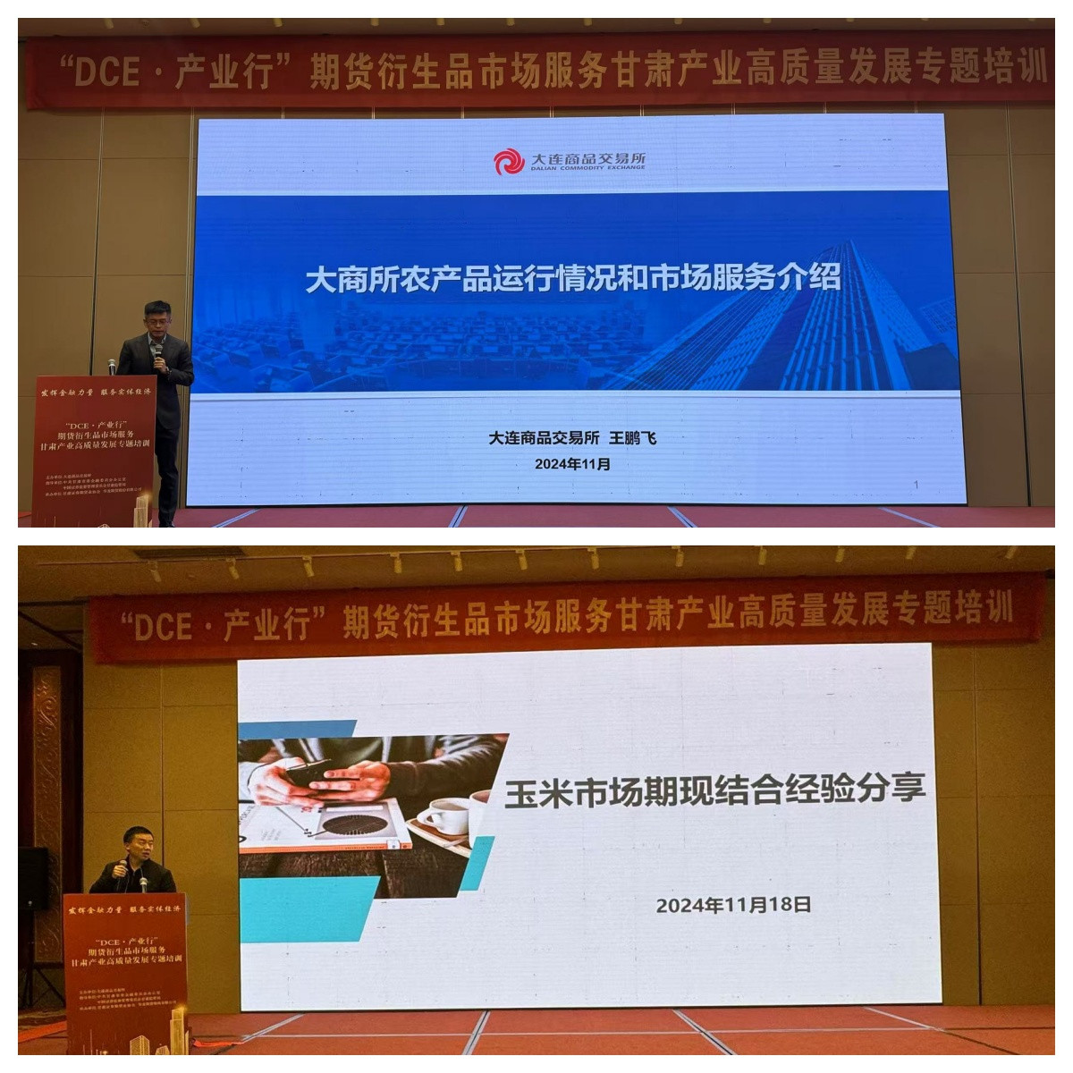 为深入贯彻党的二十届三中全会、中央金融工作会议精神和习近平总书记视察甘肃重要讲话精神,落实《国务院办公厅转发中国证监会等部门〈关于加强监管防范风险促进期货市场高质量发展的意见》的通知》(国发【2024】47号)和省委、省政府要求,提升甘肃涉农企业对期货市场功能和作用的认识,助力企业健康稳定发展,11月18日,在省委金融办、甘肃证监局指导下,由大连商品交易所主办,甘肃证券期货业协会、华龙期货股份有限公司共同承办的“dce·产业行——期货衍生品市场服务甘肃产业高质量发展专题培训”在兰州成功举办。甘肃当地涉农上市公司、新三板挂牌公司、龙头企业和金融机构相关业务负责人共计140余人参加培训。