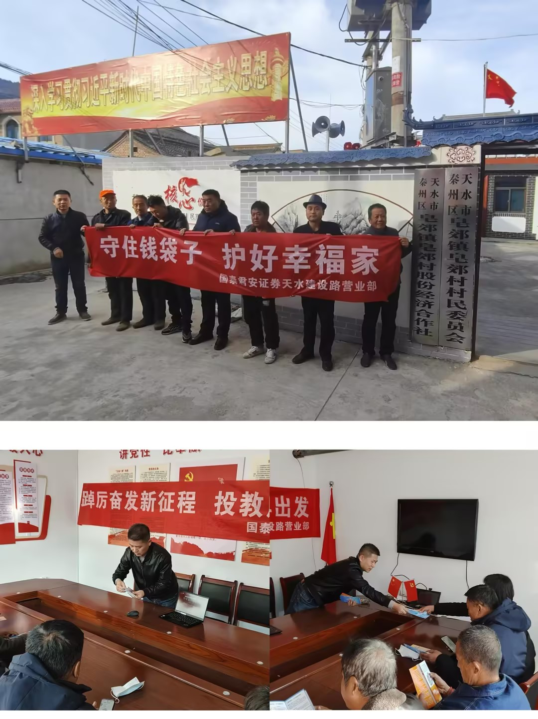 在金融市场日益复杂多变的今天,为了提高广大农村居民的金融素养和风险防范意识,帮助他们树立正确的投资理念,国泰君安证券天水建设路营业部积极践行社会责任,深入天水市秦州区皂郊镇皂角村开展了一场以 “守住钱袋子,护好幸福家” 为主题的投资者教育活动。