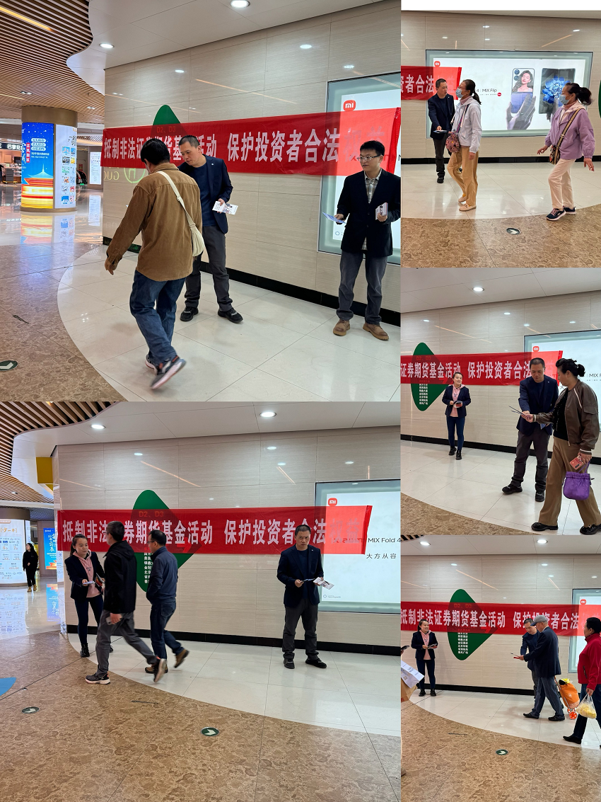 随着当前市场的持续火热,投资者热情高涨,但同时也面临着非法证券期货基金活动的威胁。为保护投资者权益,国泰君安证券兰州庆阳路营业部积极布署,于近日在商业街万象城地下通道这一人流密集区域,开展了一场以“抵制非法证券期货基金活动,保护投资者合法权益”为主题的户外宣传活动。