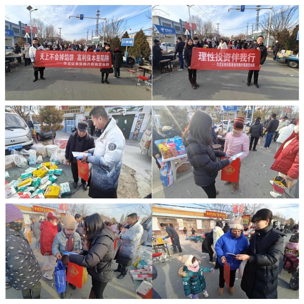 农历乙巳年春节将至,为守护乡村群众的“钱袋子”,引导投资者理性投资,2025年1月14日,华龙证券张掖丹霞路营业部深入甘州区三闸镇乡村集市,开展了岁末年初防范非法集资宣传和“理性投资伴我行” 主题投教活动。
