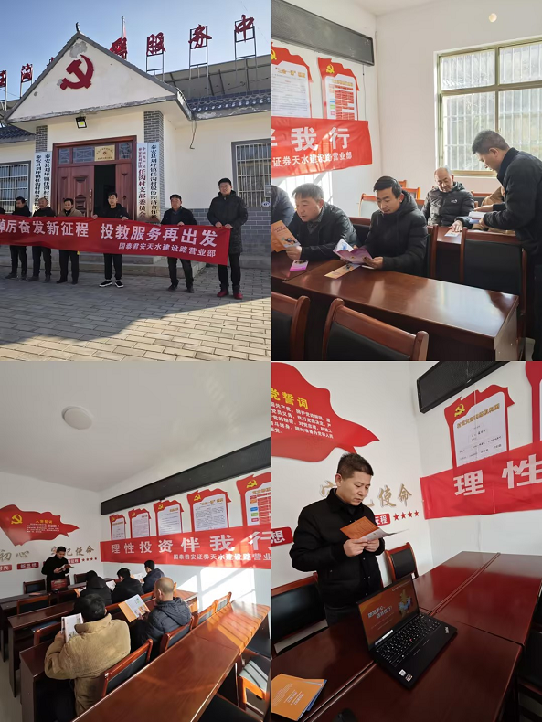 为提升广大乡村投资者的金融素养,增强其风险防范意识,树立理性投资理念,国泰君安证券天水建设路营业部响应监管部门的号召,积极行动,分别利用周末时间,邀约营业部部分投资者组织开展线下专项投教沙龙,深入秦安县刘萍镇任沟村开展以“理性投资伴我行”为主题的投资者教育活动,取得了良好的效果。